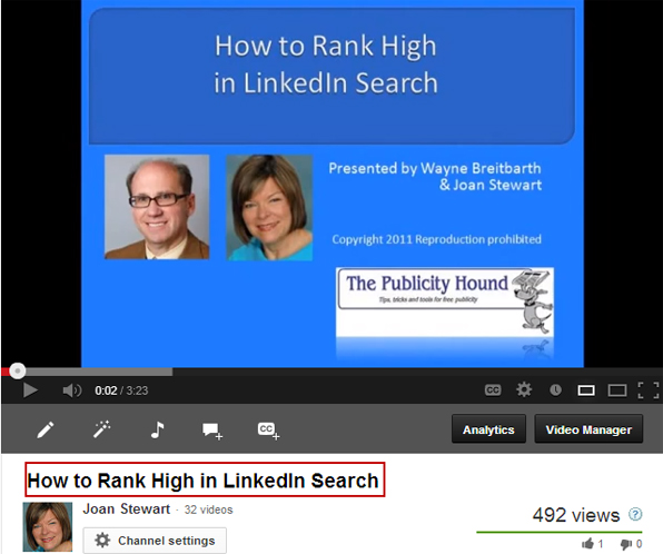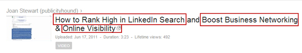 I also tagged the video with more than a dozen additional keywords and wrote a much longer description that now includes links to posts at this blog that discuss LinkedIn. I linked to How to strengthen your LinkedIn profile with benefits and value statements and How to add opt-in boxes to your LinkedIn profile and Company Page.