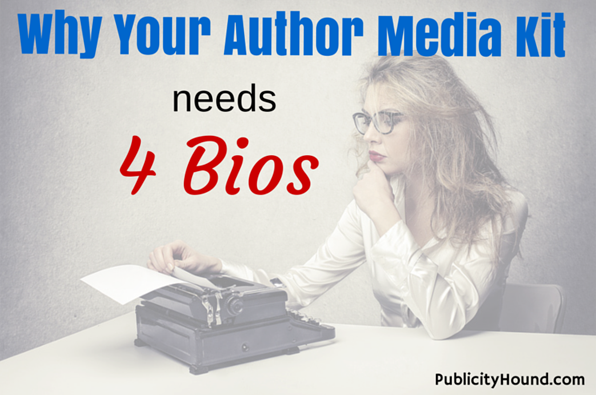 Make it easy for journalists, bloggers and others to promote your book—even on deadline. Include four bios of different sizes inside your Author Media Kit: