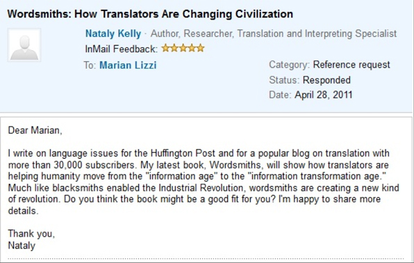 Nataly Kelly's pitch to a book editor on LinkedIn that resulted in a book contract