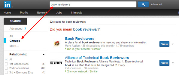 How to find Groups of book reviewers on LinkedIn by searching Groups