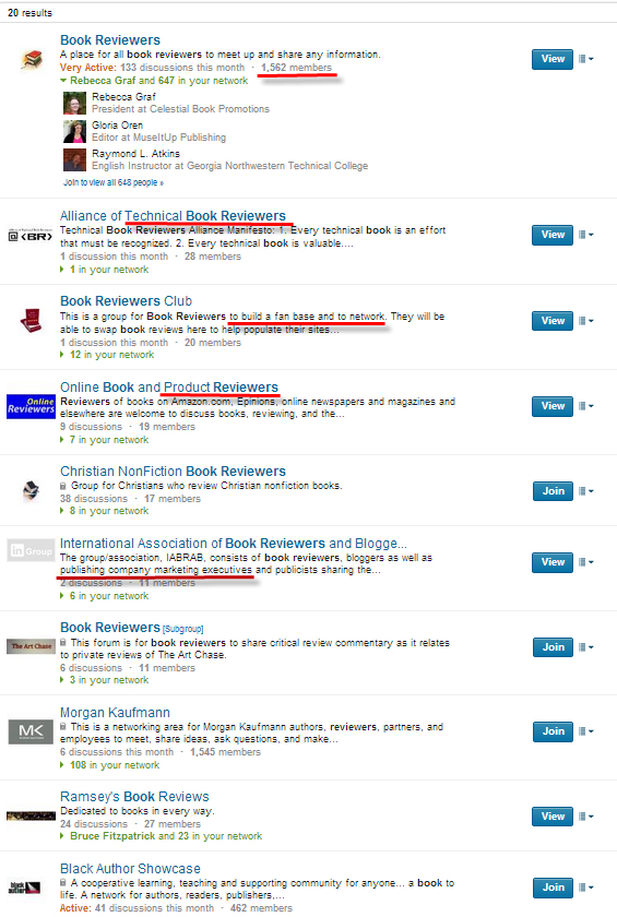 That’s why LinkedIn is a fast, easy place to look for book reviewers. Instead of targeting only the major reviewers for big-city newspapers, magazines and high-traffic websites, pursue book reviewers who authors aren’t pitching as often. Many of them have audiences in very narrow niches.