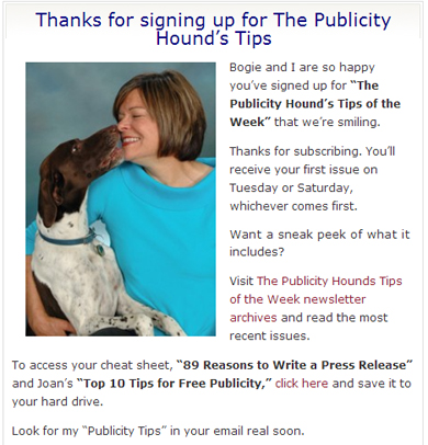 I’ve been using opt-in boxes at my website and blog for years to collect email addresses for my twice-a-week ezine, The Publicity Hound’s Tips of the Week.