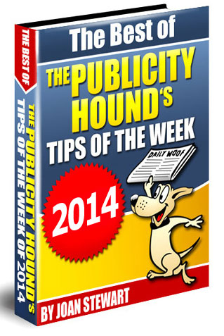 It’s “The Best of The Publicity Hound’s Tips of the Week of 2014,” an ebook that includes 26 tips from my popular email newsletter. I’ve been offering this ebook as a holiday gift for the last several years, and my subscribers love it because almost all the tips, tricks and tools are free, and the ebook is a helpful reminder of promotion they might have put off earlier this year.