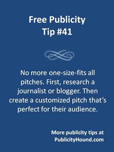That was one topic I discussed when Pat Lynch interviewed me for a show on WomensRadio. It’s less than 10 minutes. Listen to How to Get Promotion Tips and Tricks from The Publicity Hound.